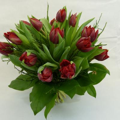 Tulpentraum gebunden mit 10, 20 oder 30 Tulpen in den Farben rot, gelb oder orange ganz wie es gefällt.