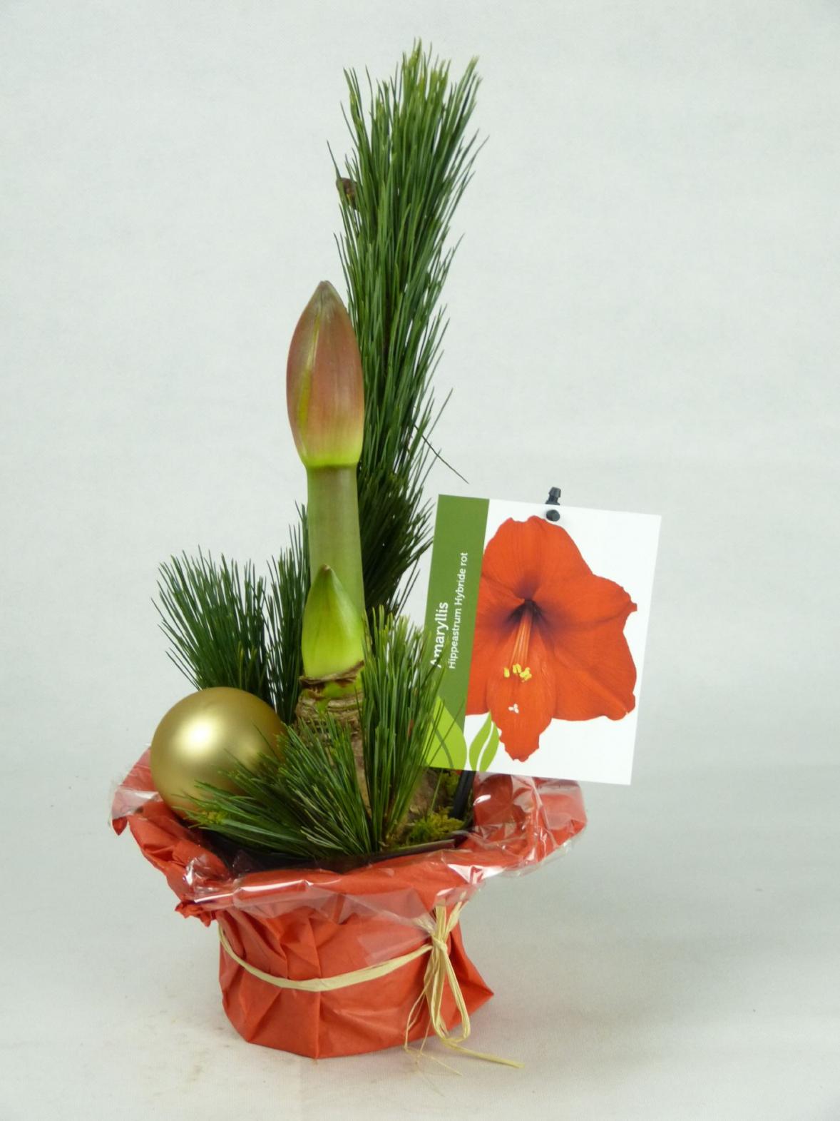 die Amaryllis ausgeschmückt und verpackt werden soll.