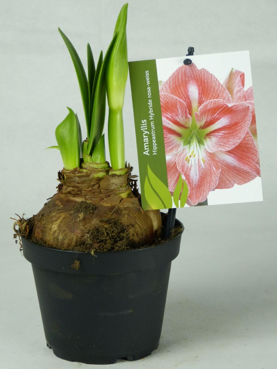 Amaryllis im Topf in rosa bei diesem Produkt können Sie die Ausgestaltung wählen.