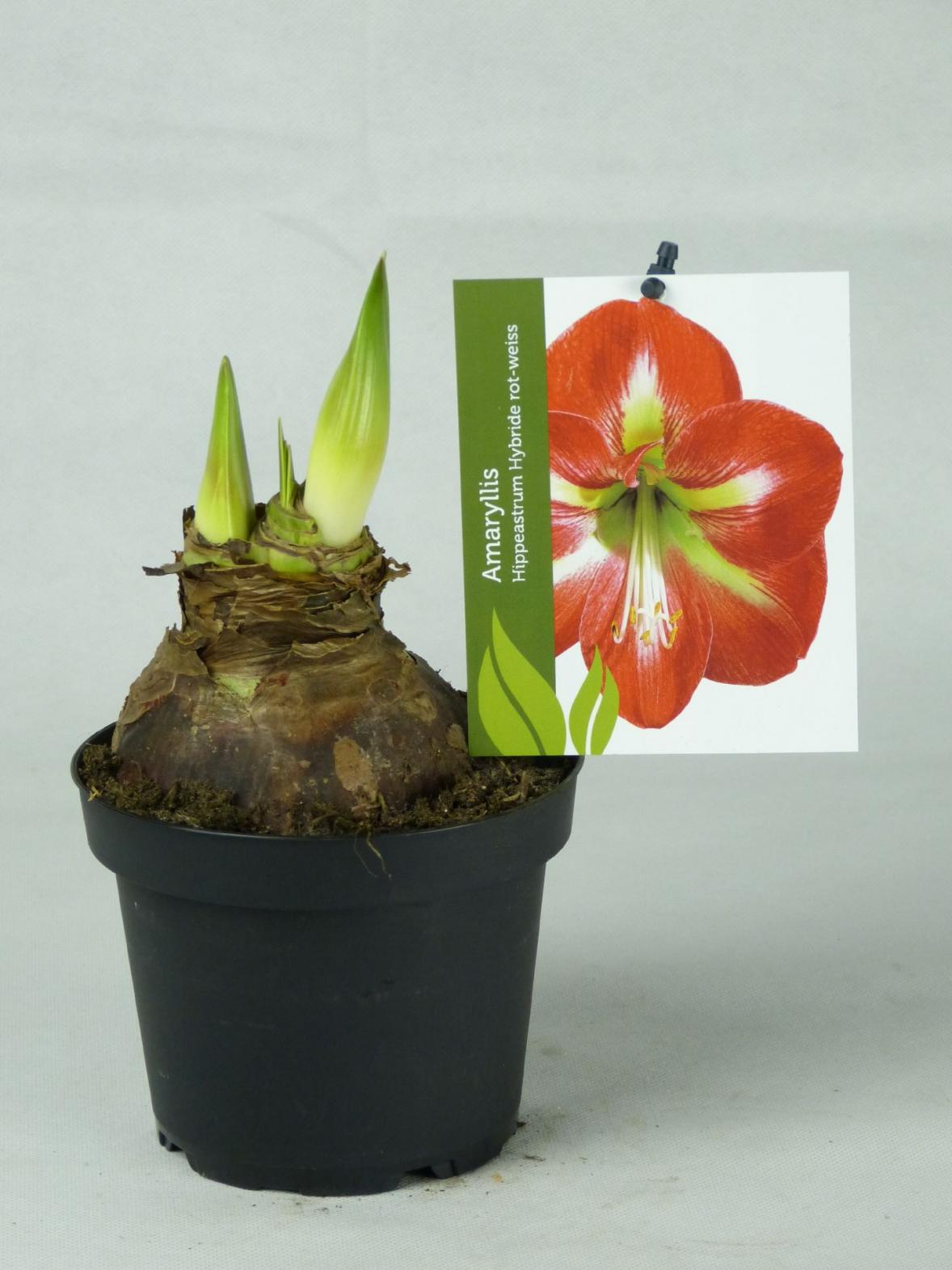 Amaryllis im Topf in rot-weiß bei diesem Produkt können Sie die Ausgestaltung wählen.