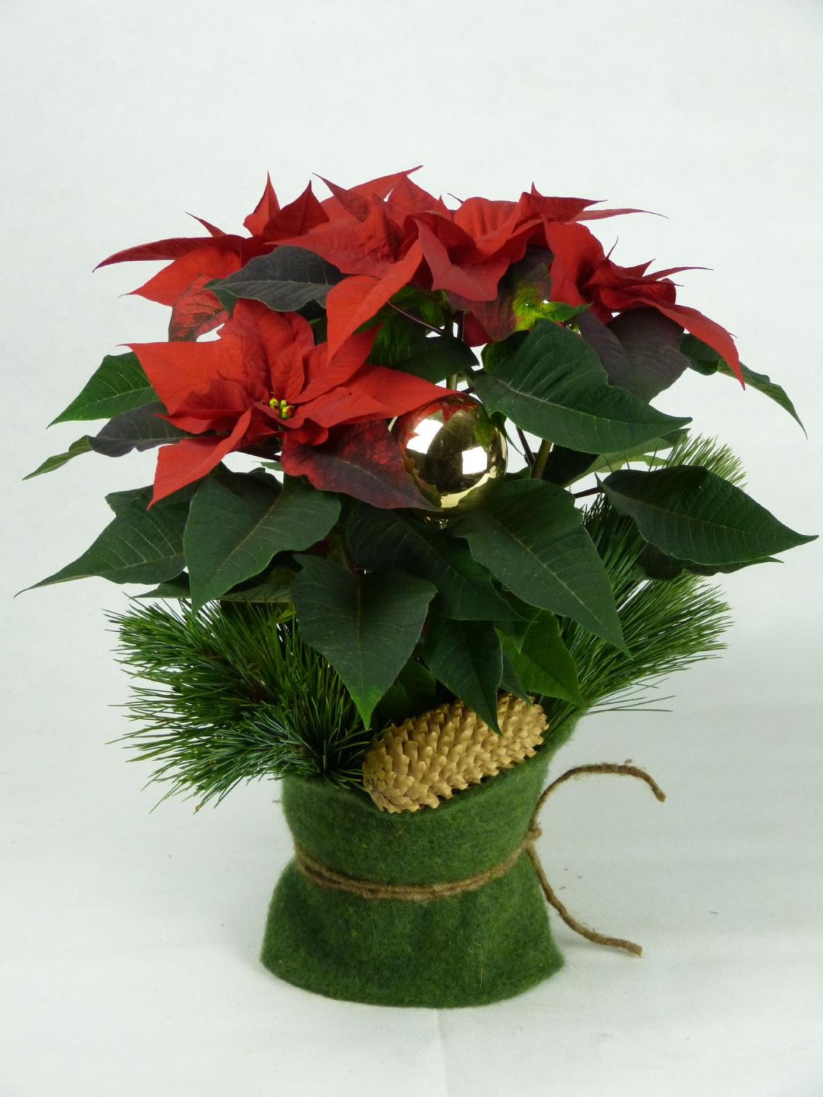 Weihnachtsstern in klassischen rot mit Kiefer, Kugel, Zapfen mit Filzmanschette
