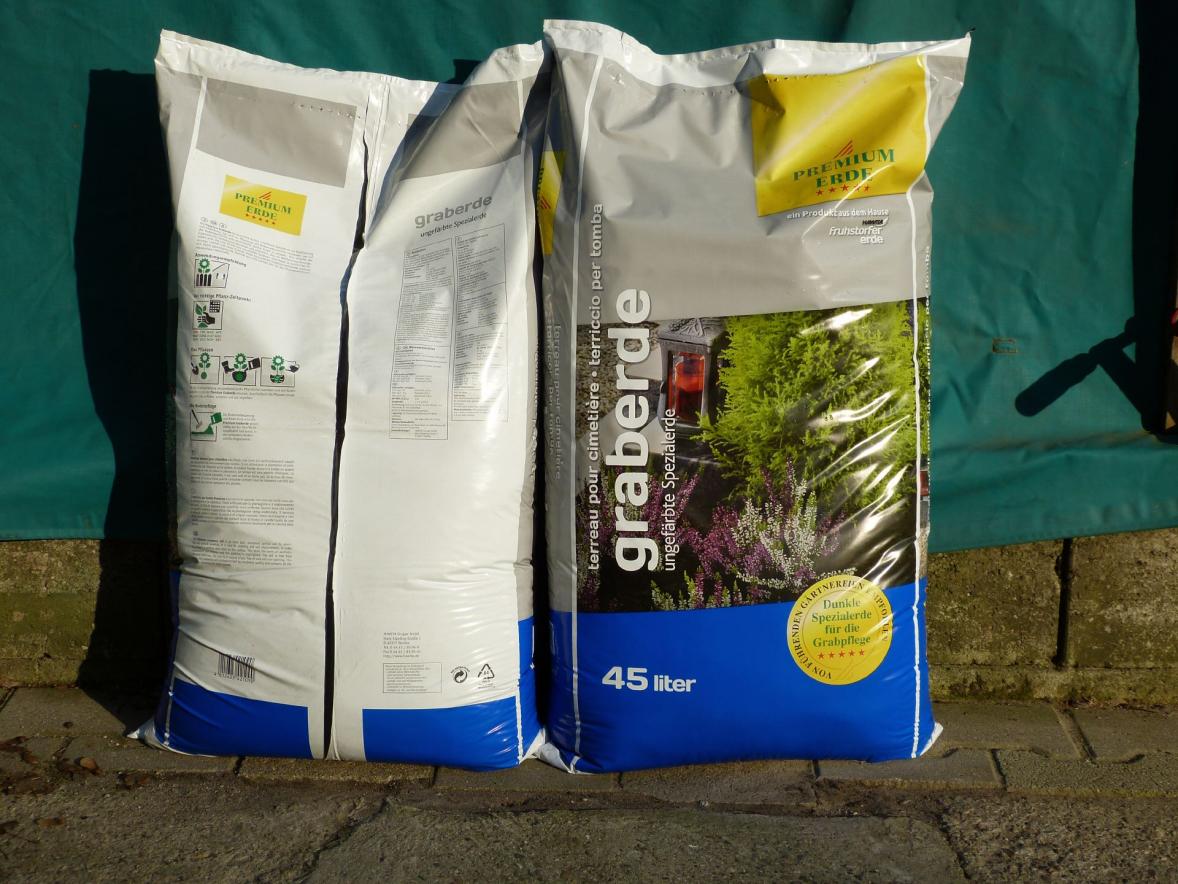 Premium Graberde im 45 Liter Gebinde, eine extra dunkle ungefärbte Spezialerde. Weiter Informationen siehe Gebindeaufdruck.