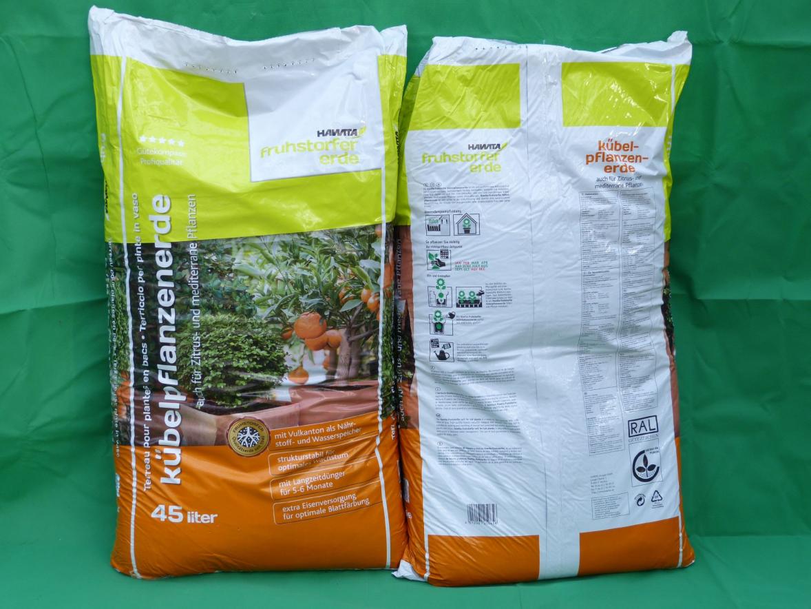 Kübelpflanzenerde von Hawita, Fruhstorfer Erde im 45 Liter Sack, auch für Zitrus-und mediterrane Pflanzen, Struckturstabil, mit Langzeitdünger und extra Eisenversorgung.
