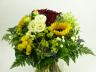 Sonnenblumen und Lavendel das sieht nach Sommer aus. Dazu Rosen, Alchemilla, Matricaria, Mico und Lysianthus, toll kurz aufgebunden.