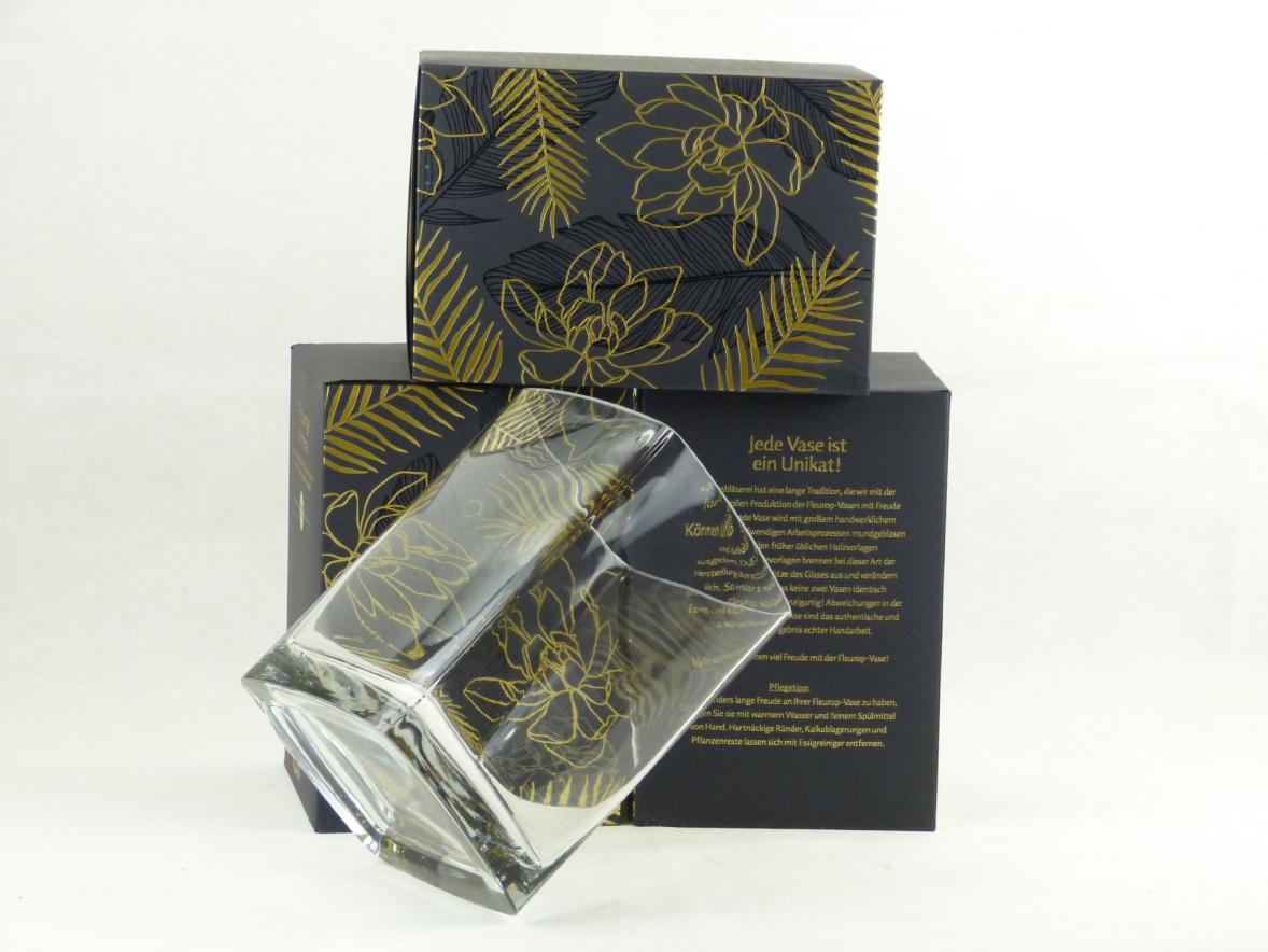Glasvase, eckig, groß und klein im Schmuckkarton