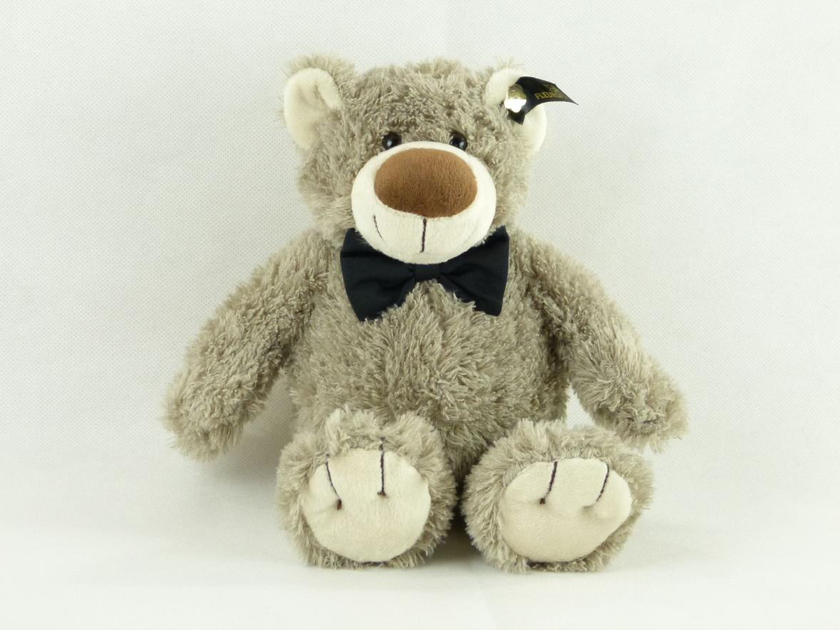 Ein kleiner Bär für Große Gefühle, ein flauschiger Teddybär, ca.26cm groß, mit Fliege und Knopf im Ohr.