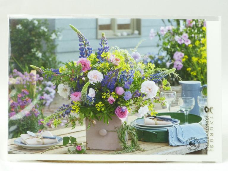 Blumenstrauß auf Gartentisch, Doppelkarte mit Umschlag 125x185mm von Taurus
