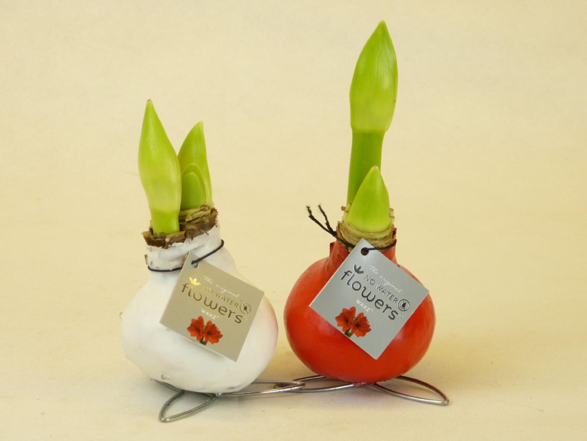 Amaryllis Kolibri-Serie mit Wachs in rot oder weiß, Blütenfarbe rot.